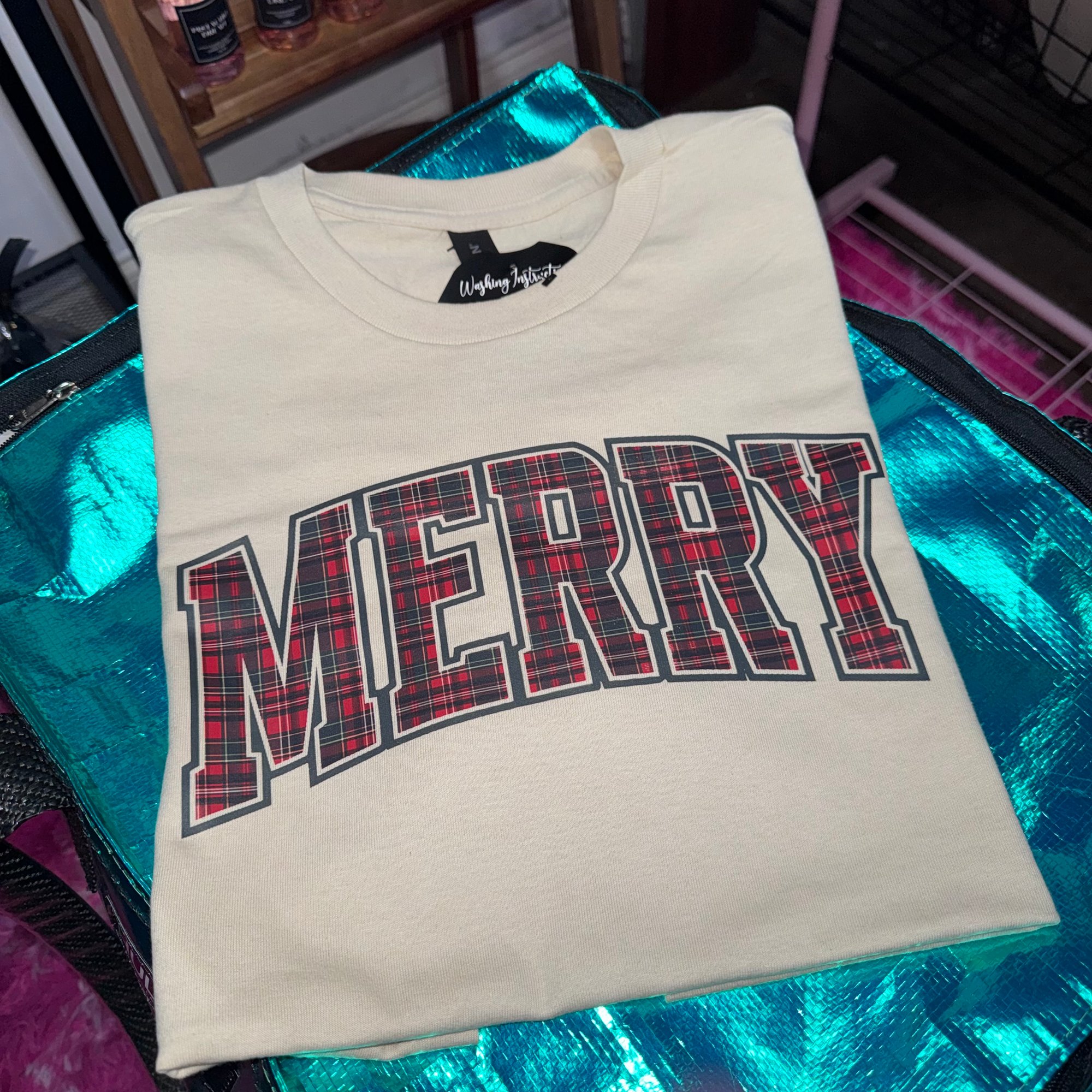 Featuring a festive Tartan Merry design with crisp, vibrant detailing, this shirt adds a touch of holiday cheer to any outfit.